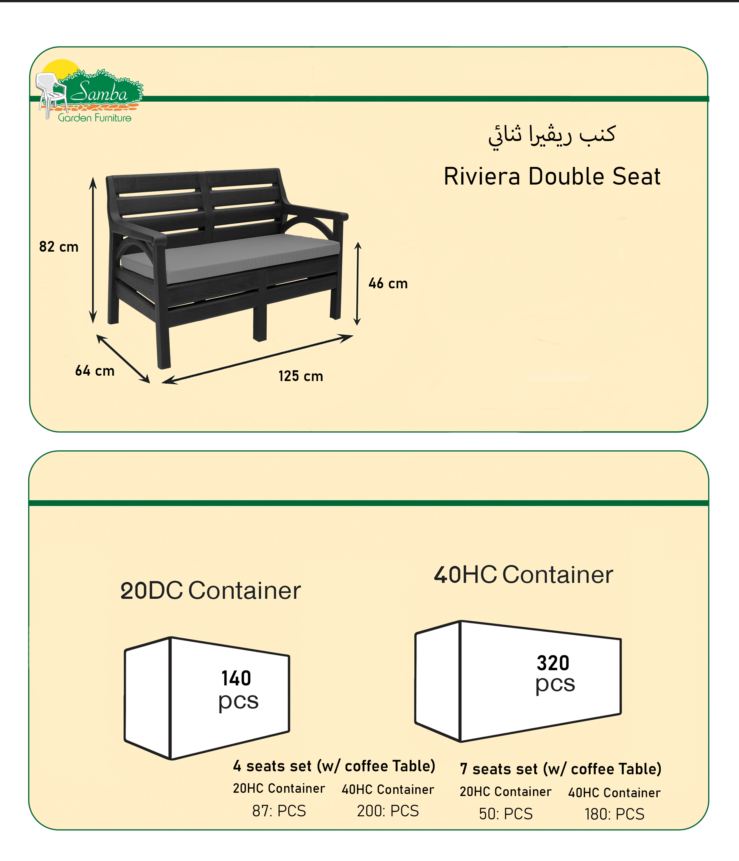 - يمكنكم تنسيقه مع مقعد الريڤيرا الثلاثي و الفردي كطقم حدائق كامل ليتناسب مع الأماكن الداخلية و الخارجية
