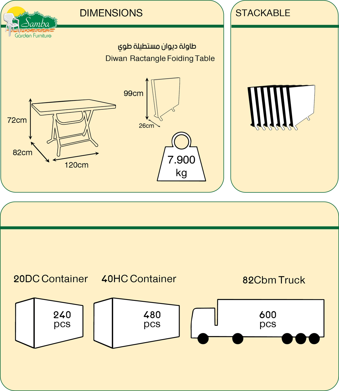 - سطح بلاستيكي مربع + أرجل ألومنيوم معالجة و قابلة للطي