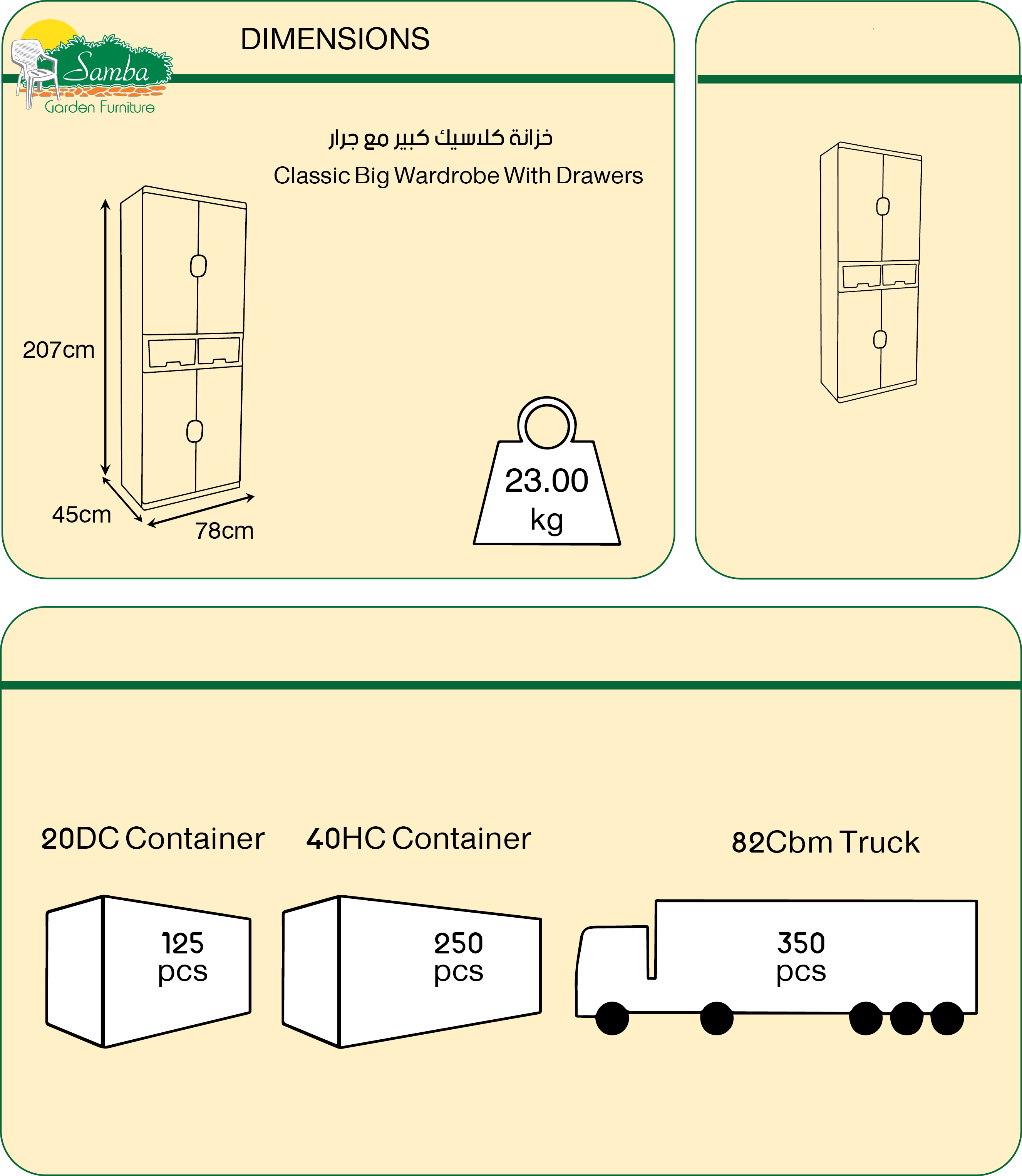 - Wardrobe with four doors, six shelves and two drawers