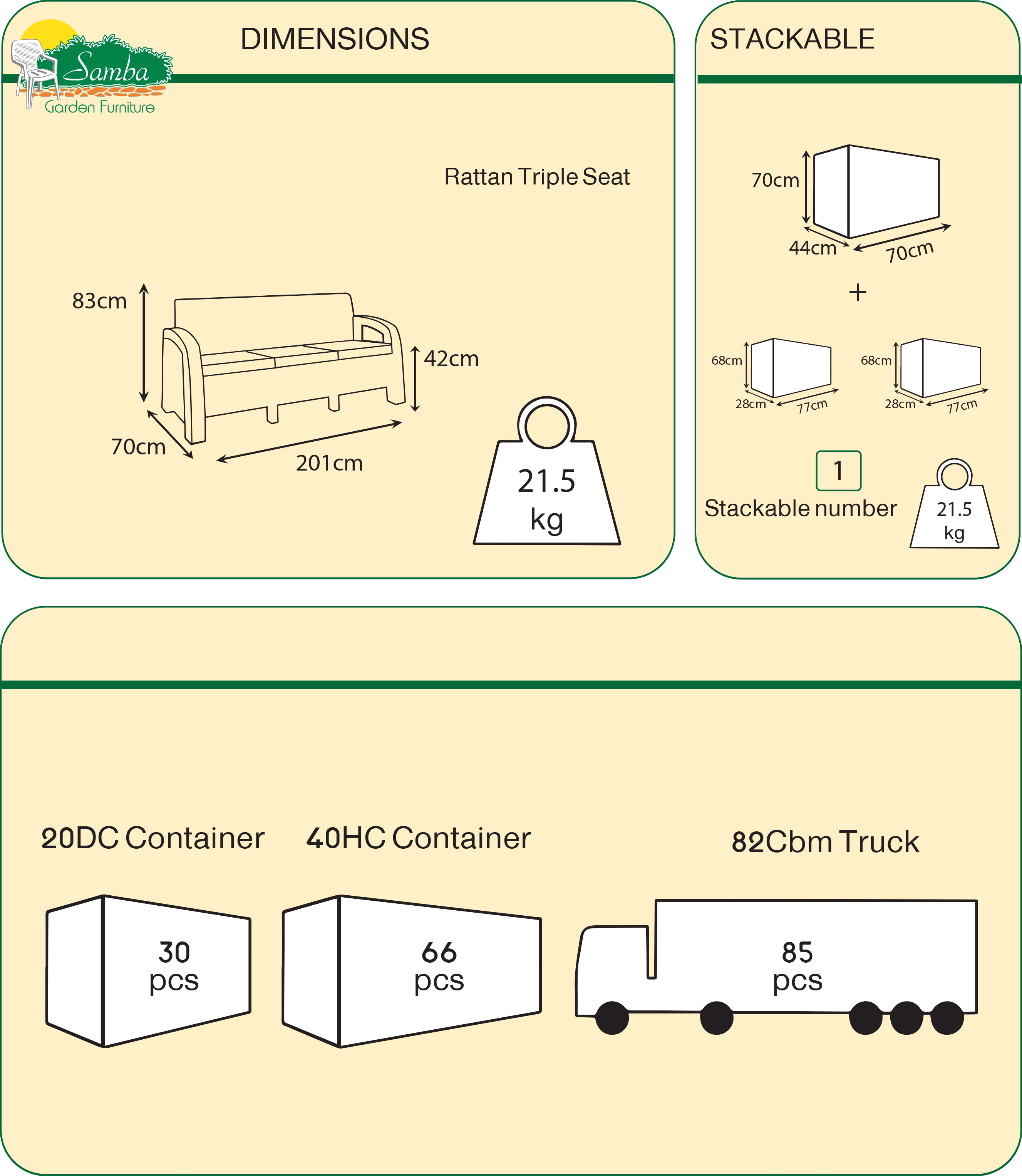 - You can combine it with a DOUBLE and SINGLE seat to have a full set of indoor or outdoor seating